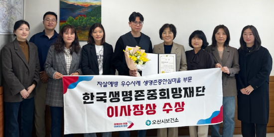 °æ±âµµ ¿À»ê½Ã Á¤½Å°Ç°º¹Áö¼¾ÅͰ¡ ÃßÁøÇÑ ¡®»ý¸íÁ¸Á߾Ƚɸ¶À»¡¯ »ç¾÷ÀÌ Çѱ¹»ý¸íÁ¸ÁßÈñ¸ÁÀç´Ü Àڻ쿹¹æ»ç¾÷ ¿ì¼ö»ç·Ê·Î ¼±Á¤µÅ ÀÌ»çÀå»óÀ» ¼ö»óÇß´Ù.